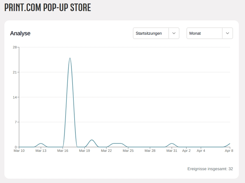 Mit dem Pop-up-Store-Dashboard erhalten Sie sofortigen Einblick in die Performance Ihres Pop-up-Stores. Sie sehen auf einen Blick, was passiert und wo Optimierungspotenzial besteht.