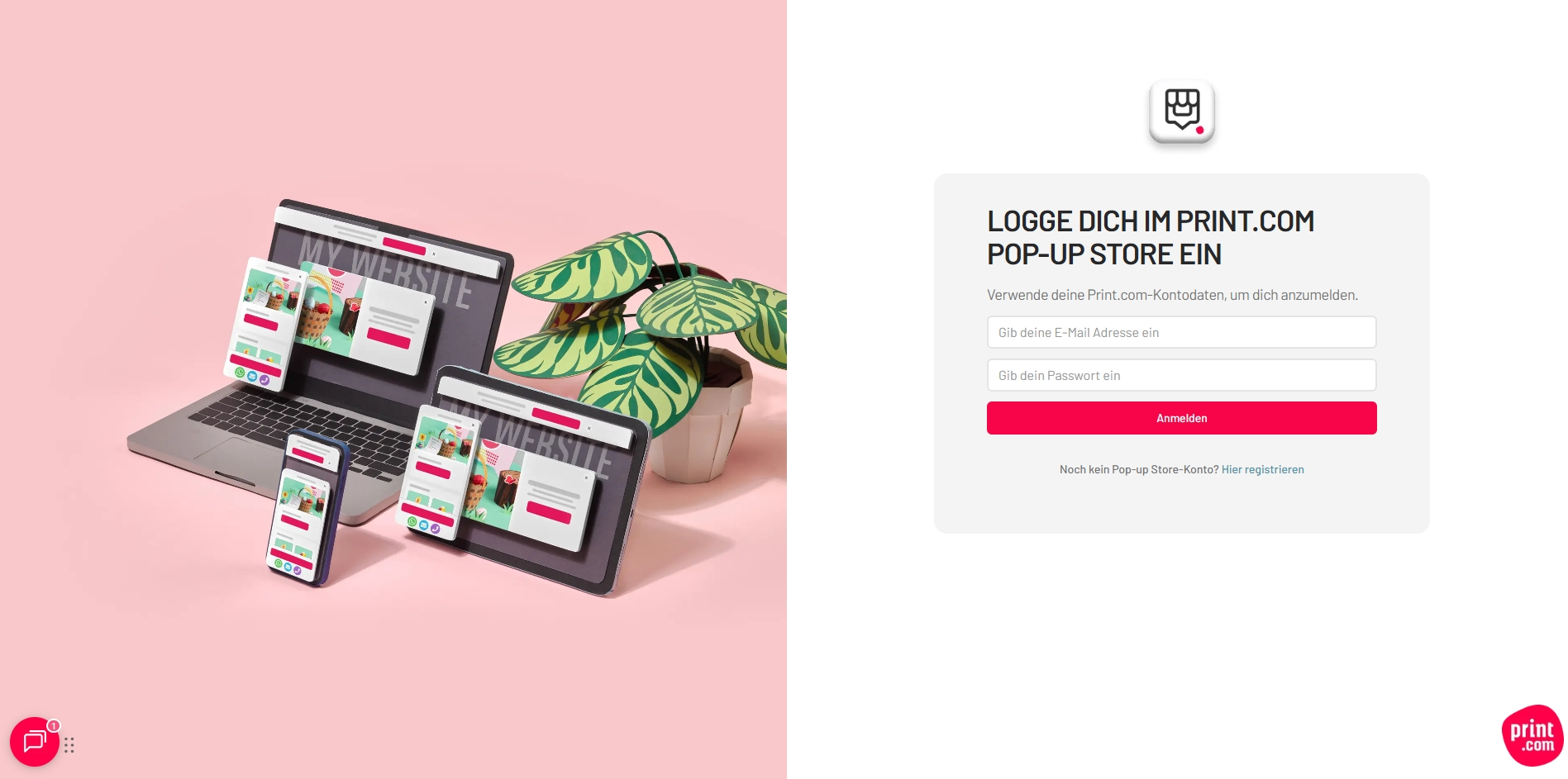 Um Ihr Pop-up-Store-Konto zu aktivieren und sich zum ersten Mal anzumelden, registrieren Sie sich zunächst über https://popup.print.com/signup. Verwenden Sie dabei dieselben Anmeldedaten wie für Ihr Print.com-Web-App-Konto. Vergessen Sie nicht, das Kästchen Ich stimme den Allgemeinen Geschäftsbedingungen zu anzukreuzen, und klicken Sie anschließend auf Registrieren.